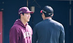 [OSEN=잠실, 최규한 기자] 23일 서울 잠실야구장에서 ‘2026 신한 SOL KBO리그’ LG 트윈스와 키움 히어로즈의 시범경기가 열린다.시범경기는 오는 24일까지 각 팀당 12경기씩 총 60경기가 펼쳐진다.경기를 앞두고 키움 이주형과 LG 오