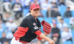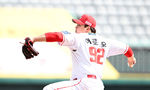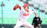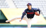 [OSEN=잠실, 지형준 기자] 24일 서울 잠실야구장에서 ‘2026 신한 SOL KBO리그’ LG 트윈스와 키움 히어로즈의 시범경기가 열렸다.이날 키움이 5-2 승리를 거뒀다.9회말 키움 박정훈이 역투하고 있다. 2026.03.24 / jpnews@osen.co.kr