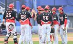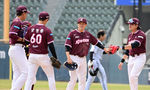 [OSEN=잠실, 지형준 기자] 24일 서울 잠실야구장에서 ‘2026 신한 SOL KBO리그’ LG 트윈스와 키움 히어로즈의 시범경기가 열렸다.이날 키움이 5-2 승리를 거뒀다.키움 선수들이 승리를 기뻐하고 있다. 2026.03.24 / jpnews@osen.co.kr
