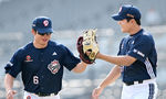 [OSEN=수원, 최규한 기자] 24일 경기도 수원 KT위즈파크에서 ‘2026 신한 SOL KBO리그’ KT 위즈와 두산 베어스의 시범경기가 열렸다.홈팀 KT는 케일럽 보쉴리, 방문팀 두산은 잭 로그를 선발로 내세웠다.8회말 KT 공격을 삼자범퇴로 막