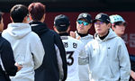 [OSEN=수원, 최규한 기자] 24일 경기도 수원 KT위즈파크에서 ‘2026 신한 SOL KBO리그’ KT 위즈와 두산 베어스의 시범경기가 열렸다.홈팀 KT는 케일럽 보쉴리, 방문팀 두산은 잭 로그를 선발로 내세웠다.6회말 KT 공격을 삼자범퇴로 막