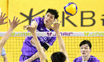 [OSEN=의정부, 조은정 기자]25일 의정부 경민대학교체육관에서 V리그 남자부 준PO KB손해보험과 우리카드의 경기가 열렸다.이날 경기 승리팀은 2위 현대캐피탈과 3전 2선승제의 플레이오프를 치른다.1세트 KB손해보험 황택의가 토