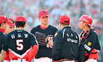 [OSEN=인천, 민경훈 기자] 28일 인천 SSG랜더스필드에서 ‘2026 신한 SOL KBO리그’ SSG 랜더스와 KIA 타이거즈의 개막전이 열렸다.이날 경기에서 SSG은 화이트를, KIA는 네일을 선발로 내세웠다.9회말 1사 2, 3루에서 KIA 이범호 감독이 마