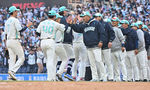 [OSEN=창원, 이석우 기자] 28일 창원NC파크에서 2026 신한 SOL KBO 리그 NC 다이노스와 두산 베어스의 경기가 열렸다. 홈팀 NC는 구창모가, 방문팀 두산은 플렉센이 선발 출전했다. NC 다이노스 선수들이 6-0으로 승리한 후 기쁨을 나누고