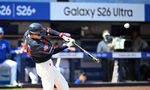 [OSEN=잠실, 지형준 기자] 28일 서울 잠실야구장에서 2026 신한 SOL KBO리그 개막전 LG 트윈스와 KT 위즈의 경기가 열렸다. 이날 LG는 요니 치리노스, KT는 맷 사우어를 선발로 내세웠다.1회초 2사 1,2루에서 KT 이강민이 2타점 적시 2루타를