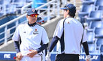 [OSEN=창원, 이석우 기자] 28일 창원NC파크에서 2026 신한 SOL KBO 리그 NC 다이노스와 두산 베어스의 경기가 열린다. 홈팀 NC는 구창모가, 방문팀 두산은 플렉센이 선발 출전한다. 두산 베어스 김원형 감독이 박지훈과 얘기하고 있다. 2