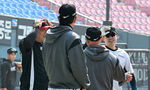 [OSEN=잠실, 지형준 기자] 28일 서울 잠실야구장에서 2026 신한 SOL KBO리그 개막전 LG 트윈스와 KT 위즈의 경기가 열렸다. 이날 LG는 요니 치리노스, KT는 맷 사우어를 선발로 내세웠다.KT 안현민이 훈련을 하고 있다. 2026.03.28 / jpnews@osen.