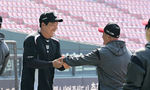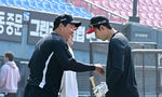 [OSEN=잠실, 지형준 기자] 28일 서울 잠실야구장에서 2026 신한 SOL KBO리그 개막전 LG 트윈스와 KT 위즈의 경기가 열렸다. 이날 LG는 요니 치리노스, KT는 맷 사우어를 선발로 내세웠다.KT 김현수가 친정팀 LG 김용일 코치와 인사를 나누