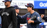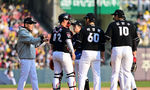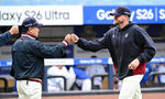 [OSEN=창원, 이석우 기자] 29일 창원NC파크에서 2026 신한 SOL KBO 리그 NC 다이노스와 두산 베어스의 경기가 열렸다. 홈팀 NC는 테일러가, 방문팀 두산은 곽빈이 선발 출전했다. 두산 베어스 김원형 감독과 코치들이 8회초 1사 1,2루 김민