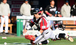 [OSEN=잠실, 지형준 기자] 29일 서울 잠실야구장에서 2026 신한 SOL KBO리그 LG 트윈스와 KT 위즈의 경기가 열렸다. 이날 LG는 임찬규, KT는 소형준을 선발로 내세웠다.8회초 2사 1,3루에서 LG 박도원이 KT 허경민 타석에 볼을 뒤로 흘리며