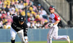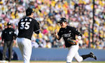 [OSEN=잠실, 지형준 기자] 29일 서울 잠실야구장에서 2026 신한 SOL KBO리그 LG 트윈스와 KT 위즈의 경기가 열렸다. 이날 LG는 임찬규, KT는 소형준을 선발로 내세웠다.7회말 2사 1루에서 LG 문성주가 2루 도루에 성공하고 있다. 2026.03.29 / j
