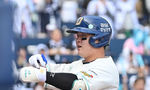 [OSEN=잠실, 지형준 기자] 29일 서울 잠실야구장에서 2026 신한 SOL KBO리그 LG 트윈스와 KT 위즈의 경기가 열렸다. 이날 LG는 임찬규, KT는 소형준을 선발로 내세웠다.4회말 2사 만루에서 LG 문성주가 1타점 좌전 적시타를 날리고 있다. 202