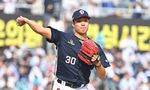 [OSEN=창원, 이석우 기자] 29일 창원NC파크에서 2026 신한 SOL KBO 리그 NC 다이노스와 두산 베어스의 경기가 열렸다. 홈팀 NC는 테일러가, 방문팀 두산은 곽빈이 선발 출전했다. 두산 베어스 양재훈이 역투하고 있다. 2026.03.29 / foto0307@ose