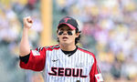 [OSEN=잠실, 지형준 기자] 29일 서울 잠실야구장에서 2026 신한 SOL KBO리그 LG 트윈스와 KT 위즈의 경기가 열렸다. 이날 LG는 임찬규, KT는 소형준을 선발로 내세웠다.4회초 1사 1루에서 LG 임찬규가 KT 한승택을 병살 처리하며 기뻐하고