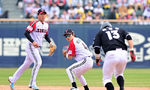 [OSEN=잠실, 지형준 기자] 29일 서울 잠실야구장에서 2026 신한 SOL KBO리그 LG 트윈스와 KT 위즈의 경기가 열렸다. 이날 LG는 임찬규, KT는 소형준을 선발로 내세웠다.4회초 1사 1루에서 LG 신민재가 KT 한승택의 유격수 땅볼에 허경민을
