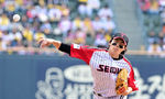 [OSEN=잠실, 지형준 기자] 29일 서울 잠실야구장에서 2026 신한 SOL KBO리그 LG 트윈스와 KT 위즈의 경기가 열렸다. 이날 LG는 임찬규, KT는 소형준을 선발로 내세웠다.1회말 KT 소형준이 역투하고 있다. 2026.03.29 / jpnews@osen.co.kr