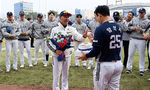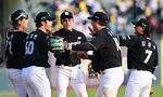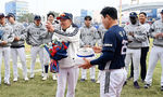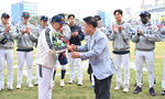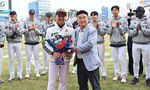 [OSEN=창원, 이석우 기자] 29일 창원NC파크에서 2026 신한 SOL KBO 리그 NC 다이노스와 두산 베어스의 경기가 열렸다. 홈팀 NC는 테일러가, 방문팀 두산은 곽빈이 선발 출전했다. 두산 베어스 김원형 감독이 첫승을 올리고 양의지로부터