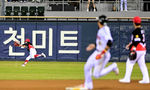 [OSEN=대전, 이대선 기자] 31일 대전 한화생명볼파크에서 2026 신한 SOL KBO리그 한화 이글스와 KT 위즈의 경기가 열렸다.이날 한화는 오웬 화이트, KT는 케일럽 보쉴리를 선발로 내세웠다.6회초 1사 1,2루에서 한화 문현빈이 KT 장성우