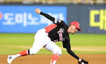 [OSEN=대전, 이대선 기자] 31일 대전 한화생명볼파크에서 2026 신한 SOL KBO리그 한화 이글스와 KT 위즈의 경기가 열렸다.이날 한화는 오웬 화이트, KT는 케일럽 보쉴리를 선발로 내세웠다.5회초 1사 1,2루에서 KT 허경민이 한화 엄상백