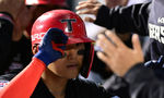 [OSEN=대전, 이대선 기자] 31일 대전 한화생명볼파크에서 2026 신한 SOL KBO리그 한화 이글스와 KT 위즈의 경기가 열렸다.이날 한화는 오웬 화이트, KT는 케일럽 보쉴리를 선발로 내세웠다.2회말 무사에서 한화 강백호가 중전 안타를