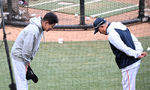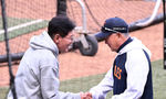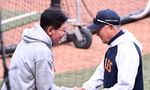 [OSEN=대전, 이대선 기자] 31일 대전 한화생명볼파크에서 2026 신한 SOL KBO리그 한화 이글스와 KT 위즈의 경기가 열렸다.이날 한화는 오웬 화이트, KT는 케일럽 보쉴리를 선발로 내세웠다.경기에 앞서 KT 이강민이 박기혁 코치와 이야