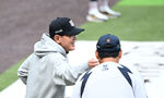 [OSEN=대전, 이대선 기자] 31일 대전 한화생명볼파크에서 2026 신한 SOL KBO리그 한화 이글스와 KT 위즈의 경기가 열렸다.이날 한화는 오웬 화이트, KT는 케일럽 보쉴리를 선발로 내세웠다.경기에 앞서 한화 김경문 감독과 훈련 중인