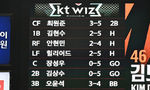 [OSEN=대전, 이대선 기자] 1일 대전 한화생명볼파크에서 2026 신한 SOL KBO리그 한화 이글스와 KT 위즈의 경기가 열렸다.이날 한화는 류현진, KT는 고영표를 선발로 내세웠다.9회초 KT 박영현이 타석에 선 기록이 전광판에 표시돼 있다.