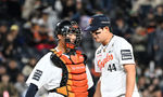[OSEN=대전, 이대선 기자] 1일 대전 한화생명볼파크에서 2026 신한 SOL KBO리그 한화 이글스와 KT 위즈의 경기가 열렸다.이날 한화는 류현진, KT는 고영표를 선발로 내세웠다.8회초 2사 1,2루에서 한화 김서현이 마운드를 내려가고 있다.