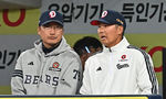 [OSEN=대구, 이석우 기자] 2일 대구삼성라이온즈파크에서 2026 신한 SOL KBO 리그 삼성 라이온즈와 두산 베어스의 경기가 열렸다. 홈팀 삼성은 이승현이, 방문팀 두산은 최민석이 선발 출전했다. 두산 베어스 김원형 감독이 정재훈