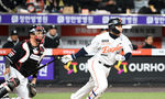 [OSEN=대전, 이대선 기자] 2일 대전 한화생명볼파크에서 2026 신한 SOL KBO리그 한화 이글스와 KT 위즈의 경기가 열렸다.이날 한화는 문동주, KT는 오원석을 선발로 내세웠다.4회말 1사 1루에서 한화 문현빈의 우전 안타 때 한화 1루주자