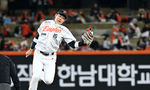 [OSEN=대전, 이대선 기자] 2일 대전 한화생명볼파크에서 2026 신한 SOL KBO리그 한화 이글스와 KT 위즈의 경기가 열렸다.이날 한화는 문동주, KT는 오원석을 선발로 내세웠다.4회말 1사 2,3루에서 한화 노시환이 땅볼을 치고 있다. 2026.04