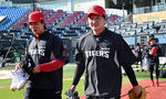 [OSEN=잠실, 조은정 기자] 2일 서울 잠실야구장에서 2026 신한 SOL KBO리그 LG 트윈스와 KIA 타이거즈의 경기가 열린다. 이날 LG는 웰스, KIA는 김태형을 선발로 내세웠다. KIA 황동하, 전상현이 훈련을 위해 그라운드에 나서고 있다. 2026.0