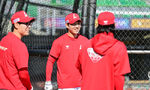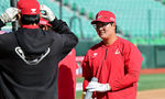 [OSEN=인천, 박준형 기자] 2일 오후 인천 SSG랜더스필드에서 2026 신한 SOL KBO리그 SSG 랜더스와 키움 히어로즈의 경기가 진행됐다.이날 SSG는 최민준을, 키움은 정현우를 선발투수로 내세웠다. 경기에 앞서 SSG 박성한이 훈련 중 미소