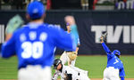 [OSEN=수원, 조은정 기자] 3일 경기도 수원 KT위즈파크에서 2026 신한 SOL KBO리그 KT 위즈와 삼성 라이온즈의 경기가 열렸다.이날 KT는 사우어, 삼성은 후라도를 선발로 내세웠다.9회말 무사 1루에서 KT 1루주자 장진혁이 삼성 포수 강