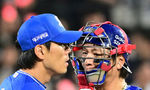[OSEN=수원, 조은정 기자] 3일 경기도 수원 KT위즈파크에서 2026 신한 SOL KBO리그 KT 위즈와 삼성 라이온즈의 경기가 열렸다.이날 KT는 사우어, 삼성은 후라도를 선발로 내세웠다.9회말 무사 1루에 삼성 강민호가 마운드에 올라 김재윤