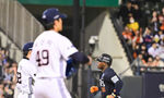 [OSEN=광주, 이대선 기자] 3일 광주-기아 챔피언스필드에서 2026 신한 SOL KBO리그 KIA 타이거즈와 NC 다이노스의 경기가 열렸다.이날 KIA는 제임스 네일, NC는 구창모를 선발로 내세웠다.5회초 1사 1,2루 NC 박민우의 적시타 때 오버런 한
