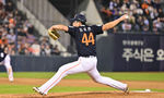 [OSEN=잠실, 박준형 기자] 3일 오후 서울 잠실구장에서 ‘2026 신한은행 SOL Bank KBO리그’ 두산 베어스와 한화 이글스의 경기가 진행됐다.이날 두산은 플렉센을, 한화는 에르난데스를 선발투수로 내세웠다. 9회말 한화 윤산흠 투수가