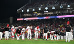 [OSEN=잠실, 박준형 기자] 3일 오후 서울 잠실구장에서 ‘2026 신한은행 SOL Bank KBO리그’ 두산 베어스와 한화 이글스의 경기가 진행됐다.이날 두산은 플렉센을, 한화는 에르난데스를 선발투수로 내세웠다. 9회말 1사 2,3루 두산 양석