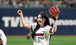 [OSEN=고척, 이대선 기자] 5일 서울 고척스카이돔에서 2026 신한 SOL KBO리그 키움 히어로즈와 LG 트윈스의 경기가 열렸다.이날 키움은 와일스, LG는 톨허스트를 선발로 내세웠다.경기에 앞서 가수 남규리가 시구를 하고 환호하고 있다
