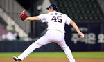 [OSEN=잠실, 조은정 기자]7일 서울 잠실야구장에서 '2026 신한 SOL Bank KBO리그' 키움 히어로즈와 두산 베어스의 경기가 열렸다.이날 두산은 최승용, 키움은 배동현을 선발로 내세웠다.7회초 두산 이용찬이 역투하고 있다. 2026.04.07 /cej@