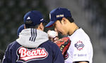 [OSEN=잠실, 조은정 기자]7일 서울 잠실야구장에서 '2026 신한 SOL Bank KBO리그' 키움 히어로즈와 두산 베어스의 경기가 열렸다.이날 두산은 최승용, 키움은 배동현을 선발로 내세웠다.6회초 무사1 루에서 두산 양재훈이 키움 김건희