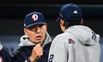[OSEN=수원, 조은정 기자]10일 경기도 수원 KT위즈파크에서 2026 신한 SOL KBO리그 KT 위즈와 두산 베어스의 경기가 열렸다.이날 KT는 사우어, 두산은 곽빈을 선발투수로 내세웠다.연장 11회초 무사 2루에서 두산 김민석이 다시 앞서가는