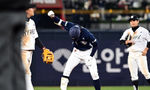 [OSEN=수원, 조은정 기자]10일 경기도 수원 KT위즈파크에서 2026 신한 SOL KBO리그 KT 위즈와 두산 베어스의 경기가 열렸다.이날 KT는 사우어, 두산은 곽빈을 선발투수로 내세웠다.연장 11회초 무사 2루에서 두산 김민석의 다시 앞서가는