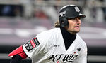 [OSEN=수원, 조은정 기자]10일 경기도 수원 KT위즈파크에서 2026 신한 SOL KBO리그 KT 위즈와 두산 베어스의 경기가 열렸다.이날 KT는 사우어, 두산은 곽빈을 선발투수로 내세웠다.7회말 2사 1,2루에서 KT 힐리어드가 우익선상으로 동점