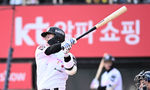 [OSEN=수원, 조은정 기자]11일 경기도 수원 KT위즈파크에서 2026 신한 SOL KBO리그 KT 위즈와 두산 베어스의 경기가 열렸다.이날 KT는 소형준, 두산은 잭로그를 선발투수로 내세웠다.3회말 KT 선두타자 허경민이 안타를 날리고 있다. 2026.