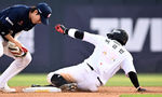 [OSEN=수원, 조은정 기자]11일 경기도 수원 KT위즈파크에서 2026 신한 SOL KBO리그 KT 위즈와 두산 베어스의 경기가 열렸다.이날 KT는 소형준, 두산은 잭로그를 선발투수로 내세웠다.4회말 2사 1루에서 KT 허경민이 2루 도루에 성공하고