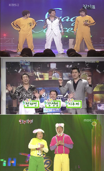 '같기도', '형님뉴스', '뭔 말인지 알지' [OSEN=정덕현의 명랑 TV] 운전을 하면서 거래처에 전화를 하고 한 손으로는 네비게이터를 조작하면서 또 한 손으로는 초조하게 담배를 태운다. 그 모습에 거침없이 들이대는 일침. “이건 운전하는 것도 아니고...” 그 한 마디에 웃음이 터져 나오면서도 또 한편으로는 그렇게 쫓기듯 살아가는 자신의 모습에 허탈해진다. 이거 원 사는 게 사는 건지. 문득 떠오르는 목소리. “사는 게 사는 것 다워야 사는 거지.” 자신을 그렇게 만든 그 누군가를 향해 살짝 성을 내본다. 그래봤자. 알아듣기나 하겠어? “뭔 말인지 알지? 몰라? 몰라? 뭐 될래?”답답한 마음을 그런 식으로 풀어본다. 세태를 풍자하는 이른바 세태개그는 개그가 시작된 이래부터 꾸준히 있어왔지만 최근 들어 좀더 생활에 밀착된 느낌이다. 그 이유는 뭘까. ‘같기도’, 복잡한 세상, 넌 도대체 누구냐 개그콘서트의 ‘같기도’라는 코너가 폭발적인 인기를 끄는 이유는 지금 세태를 제대로 읽어낸 결과다. 20세기 분석의 시대에서 21세기 융복합의 시대로 넘어오면서 깔끔하게 분류되던 기준들은 모두 모호해졌다. 학문은 학문대로 경계를 허물었고 예술 역시 퓨전이란 형태로 이합집산을 거듭했다. 그러니 우리 생활이 그러지 않으리란 법이 있을까. 핸드폰이라는 한 가지를 가지고 우리가 하는 것은 전화만이 아니다. 사진도 찍고 음악도 들으며 TV도 보고 인터넷도 한다. 사고방식이 달라지고 하드웨어 위에 얹어지는 소프트웨어가 달라지자 우리의 생활은 여러 가지를 동시에 할 수 있게 되었다. 우리는 ‘생활의 멀티플레이어’가 된 것이다. 그런데 이것은 급변한 세태에 잘 적응된 사람들에 해당되는 말이다. 변화의 과정 속에서 적응 안 되는 사람들은 그걸 흉내내보려 하지만 이도 저도 아닌 꼴이 되기 십상이다. 잘 나가는 한류의 한 모습을 보여주겠다며 바이브의 ‘맨날 술이야’를 수리공의 ‘맨날 수리야’로 바꿔 부르던 김준호는 썰렁해진 상황을 보고는 이렇게 말한다. “이건 한류개그도 아니고 삼류개그도 아니여.” 웃기지 못하는 개그맨의 개그가 한류에서 삼류로 순식간에 전락하듯, 변화에 적응 못하는 자의 삶은 이것도 저것도 아닌 삶으로 비춰진다. 혹 “넌 도대체 누구냐” 혹은 “너의 적응 안 되는 행동은 도대체 뭐냐”고 묻는 상황이 도래했을 때, 당혹스러웠던 적이 있는가. 그렇다면 ‘같기도’라는 화법은 당혹스런 상황을 유머로 넘길 수 있는 시원스런 해결책이 되어줄 것이다. ‘형님뉴스’, ∼답지 못한 세상에 일갈 웃찾사의 ‘형님뉴스’가 반복하는 말은 “∼가 ∼다워야 ∼지’다. 이것은 거꾸로 당연히 ‘∼다워야 할 것’들이 ‘∼답지 못한’ 세태를 직설법으로 꼬집는 말이다. 그렇다. ‘형님뉴스’는 ‘같기도’처럼 우회하는 방식으로 세태를 풍자하지 않는다. 오히려 잘못된 세태 자체를 비판하는 방식을 채택한다. 그러니 뉴스 형식이 따라 붙는 것. 여기에 ‘형님’이 붙자 비판의 방식은 무식해 보이지만 보는 이들을 더 속시원하게 만든다. 비판의 대상 역시 우리가 신문 어느 한 구석에서 보았던 뉴스를 그대로 잡아온다. 그러니 현실의 세태를 고스란히 개그라는 도마 위에 올려놓는 셈이 된다. 칼자루를 쥔 형님들은 그러나 문제를 해결하지는 못한다. 늘 현장에 나가있는 일용이를 찾지만 그는 엉뚱한 상황을 연출한다. 데스크에 앉아있는 형님들 역시 문제 제기와 전혀 엉뚱한 이야기들을 해댄다. 그런데 재미있는 건 아무런 문제 해결이 되지 않으면서도 그 안에서 일종의 카타르시스를 느끼게 된다는 것. 그것은 아마도 이런 심리가 깔려 있는 것 같다. 저렇게 무식한 형님들(?)도 “∼가 ∼다워야 ∼지’라고 외치는데 정작 ‘∼답지 못한’ 세태의 당사자들은 뭘 하고 있느냐는 코너 자체가 주는 비판이다. 문득 생활 속에서 ‘∼답지 못한’ 상황에 분노했다면 “∼가 ∼다워야 ∼지’라고 유머를 섞어 외쳐보는 건 어떨까. 듣는 이들이 공감했다면 이심전심의 중의적 웃음이 피어날 지도 모를 일이다. ‘뭔 말인지 알지’, 쇠귀에 경 읽기 개그야의 ‘뭔 말인지 알지’에는 말 귀 못 알아듣는 동수와 조리 있게 얘길 잘 못하는 정태가 나온다. 정태는 시종일관 “뭔 말인지 알지”를 반복하며 ‘뭔 말인지 모르는’ 동수에게 설명을 하려고 애쓴다. 이것이 점점 반복되면서 보는 사람의 답답함도 점점 커진다. 그런데 재미있는 건 거기서 동수가 “알았다”고 하면서 엉뚱한 이야기를 해댈 때, 웃음이 터지는 것. 이 단순한 설정이 어떻게 이런 폭발적인 웃음을 유발할 수 있을까. 그 이유는 그와 똑같은 상황을 익히 경험한 시청자들과 관객이 그만큼 많기 때문이 아닐까. 도대체 말이 통하지 않는 사람에 대고 무언가를 요청하는 것만큼 답답하고 속 터지는 일이 있을까. 마치 쉽게 해줄 수 있는 일인데도 절차만을 강조하며 말을 듣지 않는 사람을 만났을 때처럼, 살면서 너무도 불합리한 경험을 했다면 ‘뭔 말인지 알지’의 정태가 겪을 답답함을 이해했을 것이다. 이 ‘쇠귀에 경 읽는’ 상황에서 정태가 쏟아내는 “몰라? 몰라? 뭐 될래?”하는 말이 그렇게 속