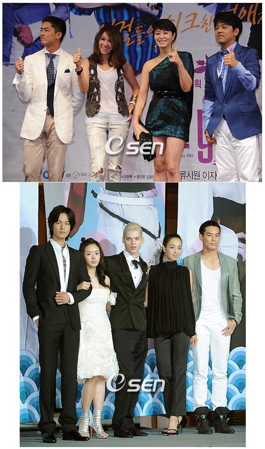 [OSEN=최영균의 인사이더] 배우 매니저들이 애먹는 일중 하나가 소속 스타를 주말 드라마에 출연시키는 것이었다. 스타거나 스타에 올랐던 배우들은 좀처럼 주말 드라마나 일일 드라마에 출연하길 꺼려했다. 아무래도 주말이나 일일 드라마는 주시청층이 장년층이었고 드라마가 다루는 내용도 가족을 중심으로 벌어지는 일상 드라마나 사극이 대다수를 차지했다. 그러다 보니 늘 트렌드의 중심에 있고 싶어하는 스타들은 좀처럼 주말이나 일일 드라마에 출연하고 싶어하지 않았다. 주중 저녁 시간대 방송되는 ‘드라마의 꽃’ 미니시리즈만이 그들 눈에 들어올 뿐이었다. 어쩌다 출연을 약속한 드라마가 주말 편성으로 변경되려 하면 출연 취소를 불사하는 경우도 있었다. 이런 분위기가 바뀌고 있다. 1일 방송을 시작한 SBS 특별기획 ‘스타일’은 지금까지 주말 저녁에는 볼 수 없는 드라마다. 패션업계를 다루는 테마도 그렇고 테마에 어울리는 감각적인 영상과 색채, 나아가 김혜수 류시원 이지아 등 주연 배우들의 면면도 기존의 주말 드라마와는 크게 다른 면모를 보이고 있다. 8일 방송을 시작하는 MBC 주말 저녁 드라마 ‘탐나는 도다’도 이런 흐름에 포함된다고 볼 수 있다. 톱스타가 나오는 드라마는 아니고 사극이라 기존의 주말 드라마와 비슷하다고 얼핏 여길 수 있겠지만 조선시대 제주 해녀가 백인 꽃미남을 만나면서 벌어지는 일을 담은 트렌드 사극이다. 미니시리즈에 더 어울리는, 젊은 층이 관심을 가질 만한 독특한 설정이다. 현재 MBC에서 방송을 하고 있는 드라마 ‘친구, 우리들의 전설’도 이런 맥락에 포함된다. 복고적인 정서를 담고 있어 장년을 겨냥한 드라마로 볼 수도 있겠지만 현빈 김민준 서도영 같은 출연 배우들의 면면이나 조직 폭력배의 세계를 다룬 액션 드라마라는 특징을 보면 역시 기존의 미니시리즈에 어울리는 구성이다. 드디어 주말 드라마가 미니시리즈의 영역을 넘보고 있는 시점에 도달했다. 출연하는 스타 배우들이 바라 보는 주말 드라마의 위상도 크게 상승됐다. 이런 변화는 역시 시청률 때문으로 보인다. 주말 저녁 드라마가 대체적으로 주중 미니시리즈보다 시청률이 잘 나오면서 스타 배우들이 주말 드라마를 더 이상 얕보지 않게 된 것이다. 최근만 봐도 트렌디한 젊은 배우였던 이진욱이 출연한 SBS ‘유리의 성’이 시청률 20%를 넘겼고 이승기 한효주의 ‘찬란한 유산’은 40%를 넘기는 대히트를 기록했다. 이 밖에 KBS 2TV의 주말 드라마는 거의 대부분 높은 시청률을 기록했다. 하지만 이런 드라마들까지만 해도 내용은 전형적인 가족 드라마였다. 종종 재벌이 나오거나 불륜이 등장하거나 색다른 소재가 다뤄지기는 해도 젊은 스타 배우가 원톱이나 투톱 주인공으로 등장하는 미니시리즈 형태의 드라마가 아니었다. 젊은 배우뿐 아니라 함께 출연하는 노장 배우들의 배역도 비중이 상당한 복수 주인공 드라마였다. 그래서 1일 방송을 시작한 ‘스타일’의 성패에 관심이 모아진다. 완벽한 미니시리즈 형태의 드라마 ‘스타일’이 주말에 배치돼 높은 성적을 거둔다면 앞으로 주말 드라마의 미니시리즈화가 더욱 가속화될 것이기 때문이다. 인터넷 다시보기 발달과 여가 시간 확대 등으로 드라마 시청층에서 젊은 층이 점점 더 이탈하면서 주중 저녁 미니시리즈의 시청률은 전반적으로 계속 하락 추세다. 4,5년 전만 해도 종종 50%를 넘기는 대박 미니시리즈가 등장했지만 이제는 그 기준선이 30%로 내려왔다. 꽤 많은 작품이 넘기던 시청률 20%도 이제는 좀처럼 넘기기 힘들다. 이런 상황에서 안정적인 시청률 추세를 보이는 주말 드라마로 미니시리즈 구성의 드라마와 톱스타 출연진이 넘어가는 것은 당연한 결과로 보인다. /대중문화가이드 ck1@osen.co.kr 드라마 ’스타일’과 ‘탐나는도다’의 주요 출연진.
