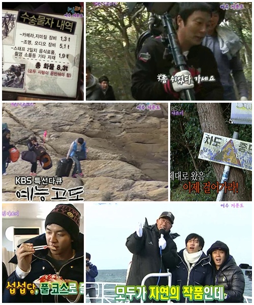 '1박2일', 예능의 판타지와 현실을 모두 담아내다 [OSEN=정덕현의 네모난 세상] 비행기를 타고 또 배를 타고 그것도 모자라 버스를 타고 들어간 거문도. 실로 걷던 이를 멈추게 할 만큼 아름다운 거문도 등대에서 바라보는 풍광. 그 풍광 아래서 한바탕 포복절도의 복불복을 하는 멤버들. 아마도 이 카메라 앞에서의 장면만을 보여주었다면 그들의 '1박2일'이 어쩌면 일반인들을 꿈꾸게 만드는 판타지로 다가왔을 지도 모른다. "저렇게 놀면서 돈 벌면 참 좋겠다." 혹 비판적인 눈으로 바라보는 이라면, 이렇게 말했을 지도 모른다. "저희들끼리 웃고 떠드는 걸 왜 우리가 보고 있어야 하지?" 하지만 적어도 '1박2일-거문도 등대'편을 본 시청자라면 적어도 이런 얘기는 하기가 어려울 것 같다. 차가 들어가지 않는 거문도 등대에서의 촬영을 위해 8톤이 넘는 짐을 손수 이고 지고 나르는 그 장면이 카메라 앞의 판타지에 숨겨진 뒤편의 현실이기 때문이다. 이 광경에서 '예능고도'라는 자막은 꽤 적절하다. '차마고도'의 이국적인 그 풍광들 뒤에는 그 아름다운 장면을 잡아내기 위해 때론 목숨을 거는 제작진들의 지독한 현실이 있다. "이건 말도 안돼." 그들이 무거운 짐을 낑낑 짊어지고 가면서 쏟아내는 이 말이 아마도 대부분의 리얼 버라이어티쇼의 현실일 것이다. 이것은 '1박2일'처럼 야생을 표방하며 전면에 생고생을 내세우거나 '무한도전'처럼 매번 힘겨운 도전에 직면해야 하는 리얼 버라이어티쇼는 물론이고, '패밀리가 떴다'처럼 가족적이고 즐거운 여행을 표방하는 프로그램도 마찬가지다. 이것은 대부분의 현장으로 나가는 리얼 예능 프로그램들에 해당되는 이야기다. 그런데 왜 그들은 이렇게 생고생을 하는 걸까. 그들이 하는 이른바 미션이라고 하는 것들은 물론 실제적인 것도 있지만, 때로는 허무맹랑한 것들도 있게 마련이다. '1박2일'이 오지로 여행을 떠나고 그 곳의 풍광을 소개하는 것은 의미 있는 일이지만, 심지어 끼니를 거르거나 하룻밤 노숙을 해야 하는 결과를 초래하는 복불복은 그 자체가 어떤 실제적인 의미를 갖고 있는 것은 아니다. 그 목적은 단 하나, 재미다. 과거적인 노동의 가치관이라면 이 재미와 즐거움에 목숨을 거는 프로그램이 이해가 되지 않을 지도 모른다. 하지만 이 '1박2일'이 보여주는 세계는 이른바 '드림 소사이어티'의 징후를 그대로 그려낸다. 우리는 무형적인 즐거움을 위해 기꺼이 돈을 지불하는 사회에 살고 있다. 그러니 이것은 기본적으로 즐거움과 웃음을 주는 것을 목적으로 하고 있는 예능 프로그램들이 갖고 있는 이중적인 모습이다. 그 앞에서는 웃음이 넘치지만 그 뒤편을 보면 땀과 눈물이 배어있다. 하지만 그 괴리가 너무나 크기 때문에 종종 우리는 앞면이 전부라고 여기는 경우가 많다. 특히 '리얼'이라는 수식어를 달고 있기 때문에, 앞면 그 자체만이 실제라고 여겨지기도 한다. 그리고 이 앞면의 즐거움은 때론 진정성을 의심하게 만드는 논란의 심정적인 빌미를 제공하기도 한다. '1박2일-거문도 등대'편이 의미 있었던 것은 바로 이 예능의 뒤편을 프로그램 속으로 잘 끌어들였다는 점이다. 복불복이라는 예능적인 재미와 그 재미의 결과로서 그 즐거움을 만들어내기 위한 "말도 안되는" 제작진들의 노고를 직접 체험하게 한 점은 그래서 실로 절묘하다 할 수 있다. '1박2일'이 리얼 예능으로서 선도적인 위치를 차지하게 된 것은 그저 운이 좋았기 때문이 아니다. 리얼 예능이란, 리얼이 갖는 고통과 예능이 갖는 즐거움이 모두 공존하는 형식이다. 리얼 없는 예능은 진정성의 비판을 받기 마련이고, 예능 없는 리얼은 재미라는 예능의 근본을 저버렸다는 비판을 받게 마련이다. '1박2일'은 바로 이 리얼과 예능, 즉 예능의 앞면과 뒷면의 모든 모습들을 가감 없이 보여주었기 때문에 그 1인자의 위치에 설 수 있었다고 볼 수 있다. /정덕현 대중문화 칼럼니스트 mansuri@osen.co.kr 블로그 http://thekian.net/