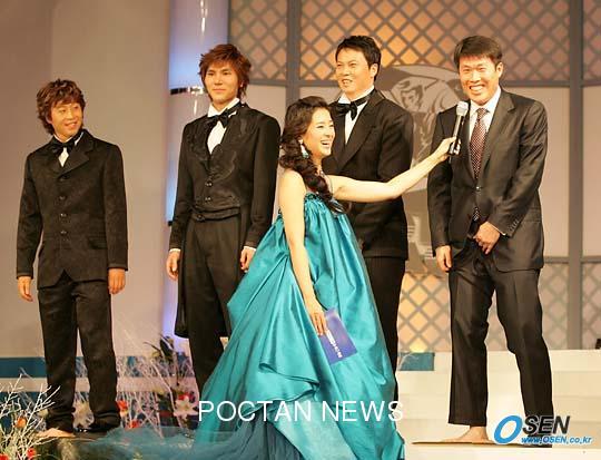 29일 서울 그랜드 힐튼 호텔에서 열린 2004 삼성 하우젠 K리그 시상식에서 수상자들이 단체로 풋 프린팅을 하는 순서에서 사회자가 이운재에게 "골키퍼는 손을 찍어야 하지 않냐"고 하자 차범근 수원 삼성 감독이 "그럼 감독은 입술을 찍어야 하냐"며 웃고 있다./손용호 기자(폭탄뉴스.com) [Copyright ⓒ OSEN(www.osen.co.kr) 무단전재 및 재배포 금지]